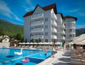 | Инфраструктура: Питание по системе «Все включено» (3 основных приемов пищи в формате «шведского стола»), кинозал, бильярдная, открытый бассейн с гидромассажной зоной, баром, детской зоной купания (площадь бассейна 330 кв.м.), Wi-Fi на всей территории отеля, прокат спорт инвентаря (велосипеды, самокаты, мячи, настольный теннис), бар у бассейна (слабоалкогольные напитки и безалкогольные напитки в баре у бассейна), детская полщадка - горки, качели, песочница, детская игровая комната с развлечениями для детей любых возрастов. Каждые 30 минут шаттл будет курсировать в направлении отель – пляж -отель |