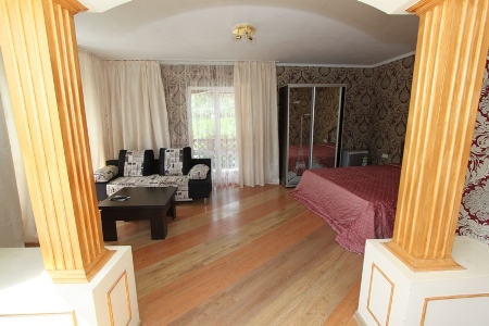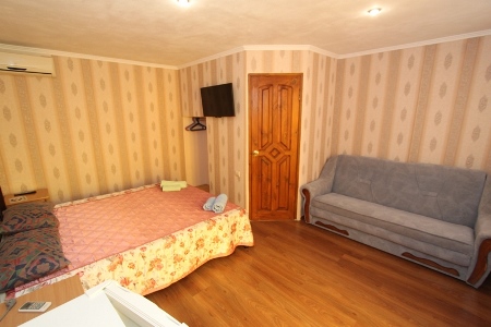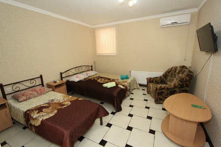 Каждый номер Гостевого дома представлен в разном архитектурном стиле, что подчеркивает его индивидуальность. В каждом номере предусмотрено все необходимое для полноценного отдыха: индивидуальное кондиционирование, кабельное ТВ, выход в Интернет. В ванной комнате : совмещённый санузел с душевой кабинкой, имеется фен и набор ванных принадлежностей. Полулюкс семейный (3 спальных места + доп. место) Мебель: односпальная и двуспальная кровати, диван-кровать, кресло-кровать, стулья, шкаф, прикроватные тумбочки, стол, журнальный столик, туалетный столик, комод, прихожая, вешалка, зеркало. Стандарт (3 спальных места + доп. место) Мебель: двуспальная кровать, диван-кровать, кресло-кровать, шкаф, прикроватные тумбочки, журнальный столик, стол, комод, вешалка, зеркало. Полулюкс (3 спальных места + доп. место) Мебель: двуспальная кровать, диван-кровать, кресло-кровать, стулья, шкаф, журнальный столик, комод, прихожая, вешалка, зеркало. |