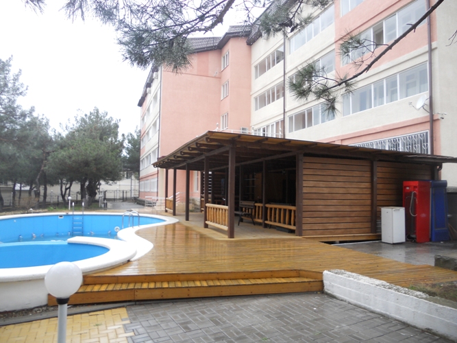 | Инфраструктура: на территории гостиницы имеется открытый бассейн и кафе. В непосредственной близости от гостиницы расположены столовая и лечебный корпус санатория "Черноморец", Геленджикский дельфинарий, сафари-парк. |