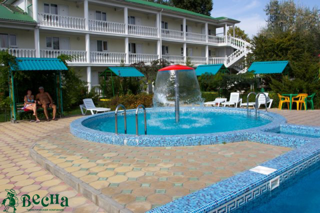| Инфраструктура: плавательный бассейн с гидромассажем, детский бассейн с водопадом, детский городок, настольный теннис, автостоянка, wi-fi интернет. | |