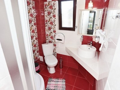 Во всех номерах гостевого дома есть бесплатный Wi-Fi, холодильник, кондиционер, телевизор, фен, чайник и посуда. 2-х местный номер - максимум человек – 2, площадь номера - 17 кв.м. В номерах на первом этаже (коричневого цвета) - уютная, индивидуальная терраса со столиком для отдыха. На втором этаже (сиреневые номера), в сан.узлах душевая кабинка, сан.узел чуть меньше, в этих номерах есть балкон с видом на Кара-Даг. В номере: уютная мебель; телевизор; холодильник; кондиционер; фен; электрочайник; набор посуды(тарелки, чашки, вилки, нож, штопор, доска), санузел (душ, туалет, умывальник); балкон(терраса). 3-х местный номер - максимум человек – 3. Номер расположен на первом этаже, таких номеров всего два. Возле номера есть терраса со столом и стульями. В номере 2 односпальные кровати с ортопедическими матрацами и двуспальный диван, который при необходимости можно использовать как двуспальную кровать. Площадь номера с санузлом 18 кв.м. Рядом с номером есть детская площадка. В номере: 2 односпальные кровати с ортопедическим матрацем; раскладной диван; телевизор; холодильник; кондиционер; фен; набор посуды; электрочайник; санузел (душ, туалет, умывальник); терраса. 2-х комнатный номер с кухней - максимум человек – 4, площадь номера - 35 кв.м. В номере две комнаты: спальня с выходом на балкон откуда видно море и Кара-Даг, и кухня. На кухне есть двуспальный диван и кухонная мебель с необходимой посудой. Номер рассчитан на 3-4 человека. Номер расположен на 3-м этаже. В номере: уютная мебель; оборудованная кухня; 2 LCD телевизора; холодильник; 2 кондиционера; фен; электрочайник; санузел (душевая кабинка, туалет, умывальник); балкон. Коттедж - максимум человек – 7, площадь номера - 89 кв.м. В коттедже - 2 этажа. Общая площадь с террасой 89 кв.м. Сдается под ключ на одну или несколько семей из 6-7 человек. |