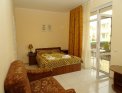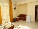 Размещение. Для размещения отдыхающих предлагается 16 номеров с удобствами – экономов, стандартов, семейных и апартаментов. Все они оформлены в современном стиле, в спальнях установлена удобная деревянная мебель, есть плазменный TV, небольшой холодильник и кондиционер. Во всех номерах имеются балконы с видом на город и сад во дворе. |